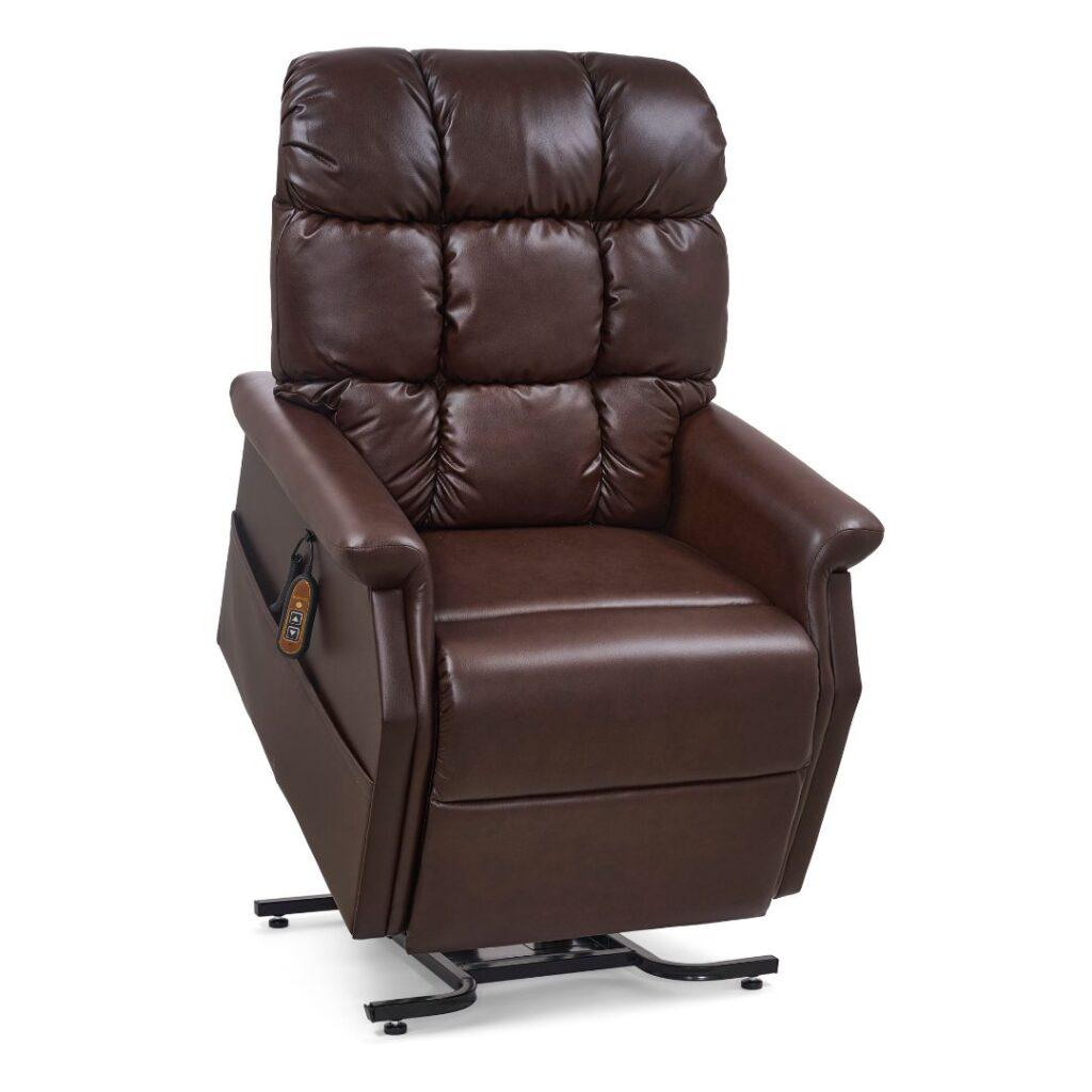 Enjoy the simplicity of comfort in the Cambridge by Golden. This traditional style power lift recliner is available in three sizes offering a unique fit for hours of comfort. The plush biscuit back and luxurious chaise pad provide supportive comfort for your body while the 1-Zone Comfort Zone Positioning System glides your body to an ergonomic recline position.