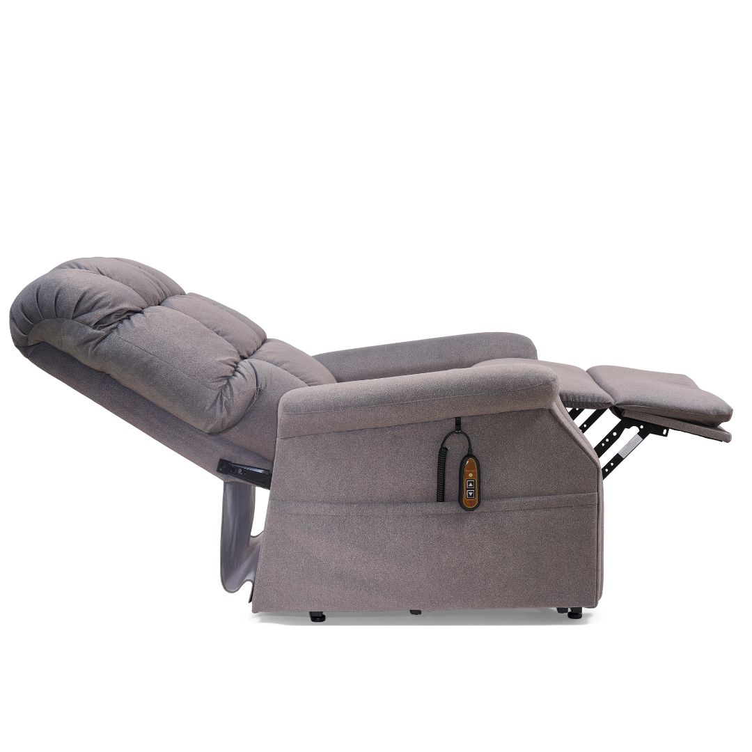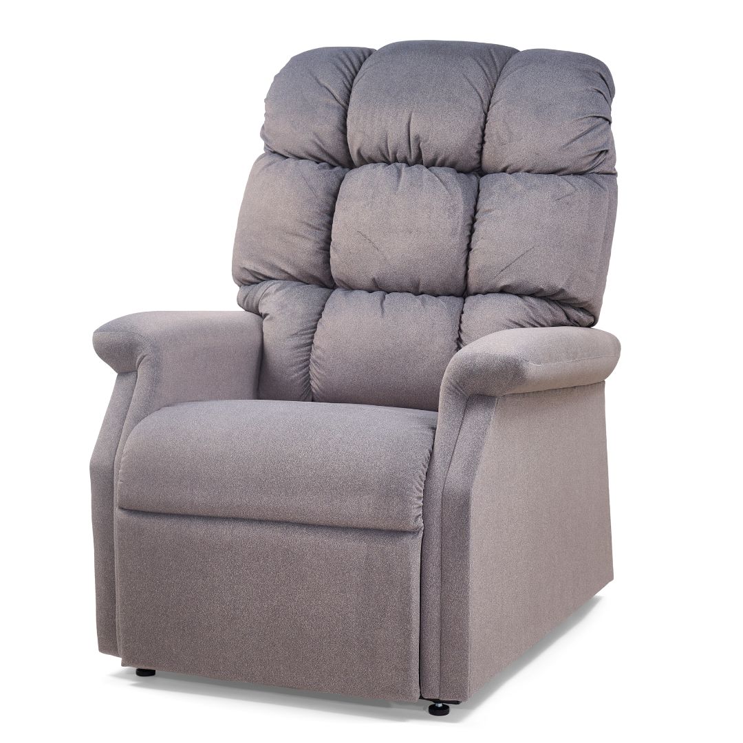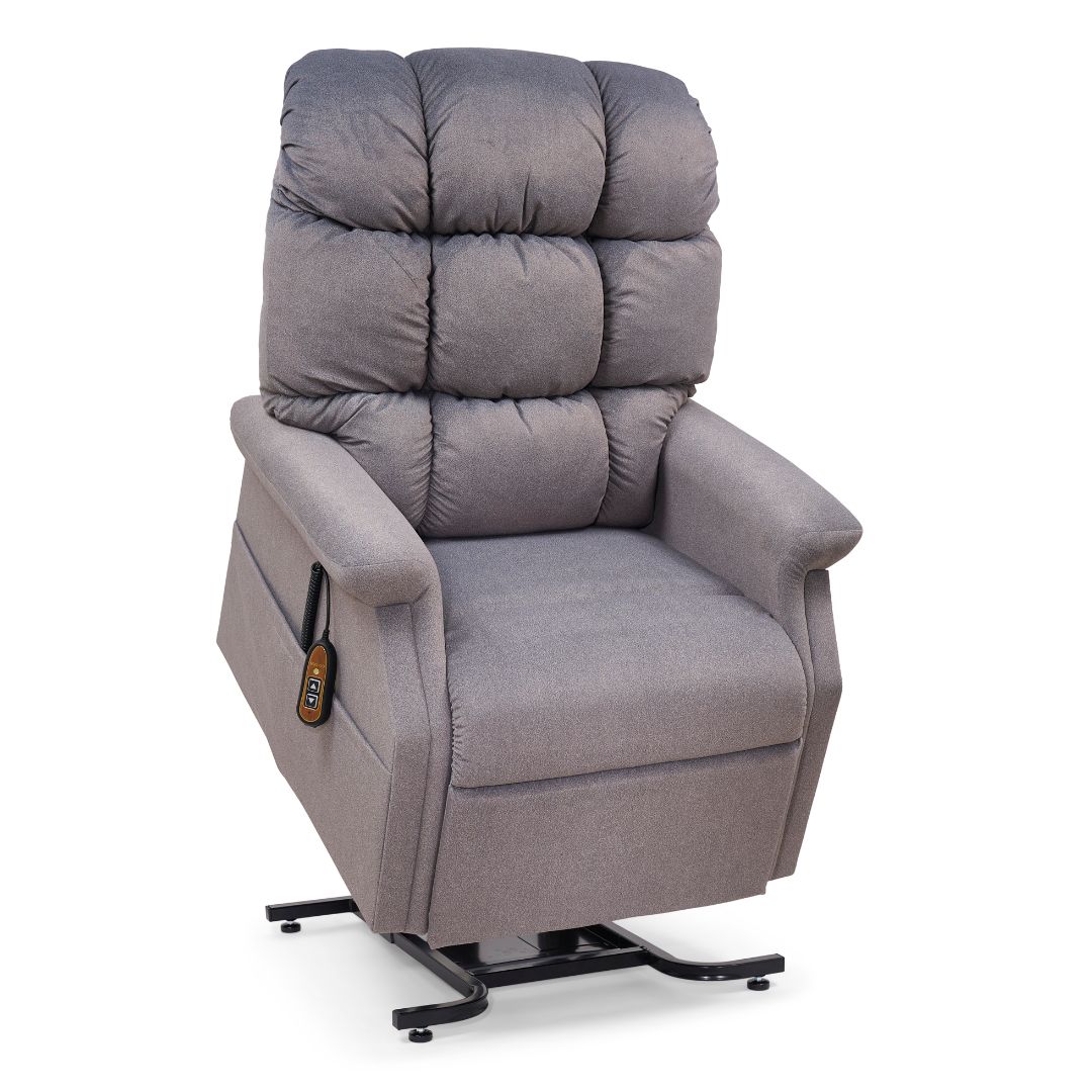 Enjoy the simplicity of comfort in the Cambridge by Golden. This traditional style power lift recliner is available in three sizes offering a unique fit for hours of comfort. The plush biscuit back and luxurious chaise pad provide supportive comfort for your body while the 1-Zone Comfort Zone Positioning System glides your body to an ergonomic recline position.